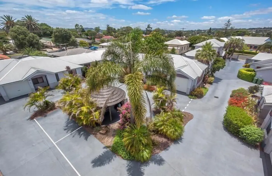 中庭の景色を見渡すAnnand Mews Apartments トゥーンバホテルは、エンパイア・シアター・トゥーンバから歩いて25分の場所に位置しています。 駐車場もあります。